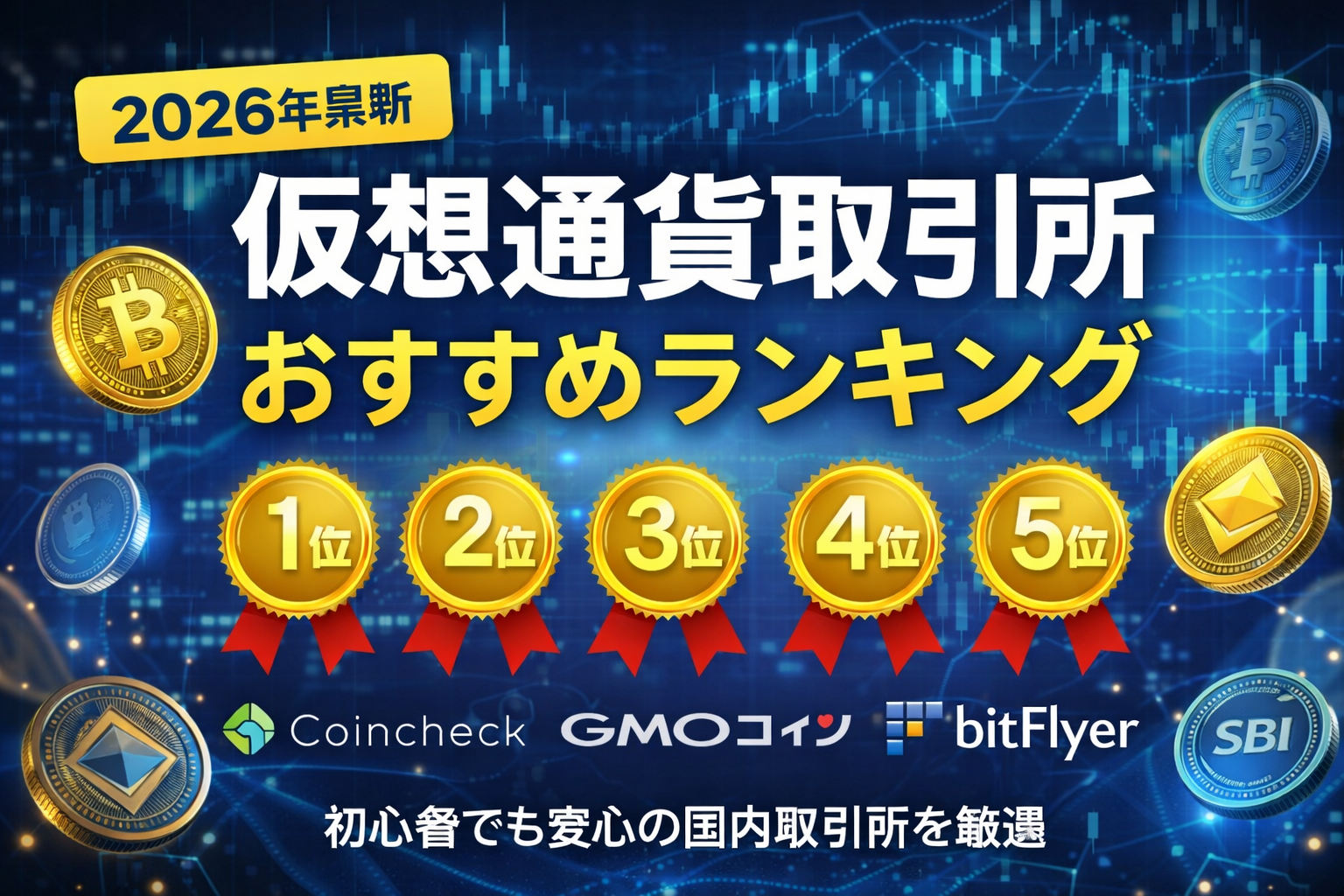 初心者の方は、まず国内の仮想通貨取引所から口座開設するのがおすすめです。主要な国内取引所を比較すると以下の通りです。